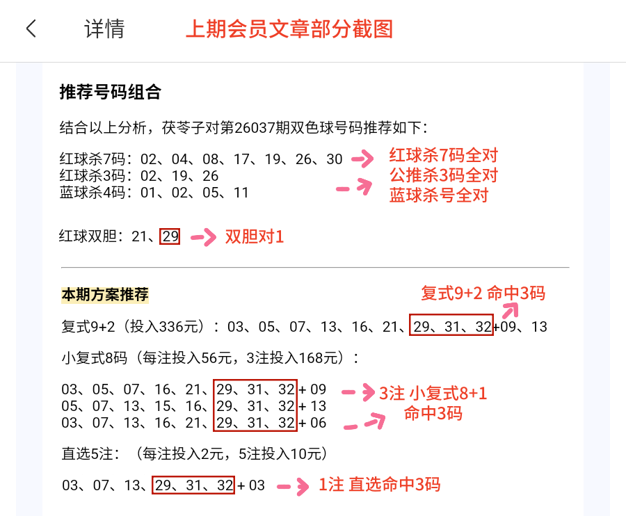 各位彩友可以根据需要购买,会员文章给出了更加完整的思路参考,希望能对大家有所帮助,结合自己的思路提高中奖率。