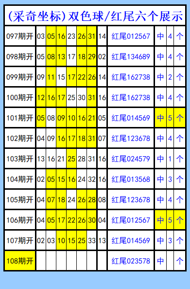 双色球第108期图文(采奇坐标),红尾六个展示