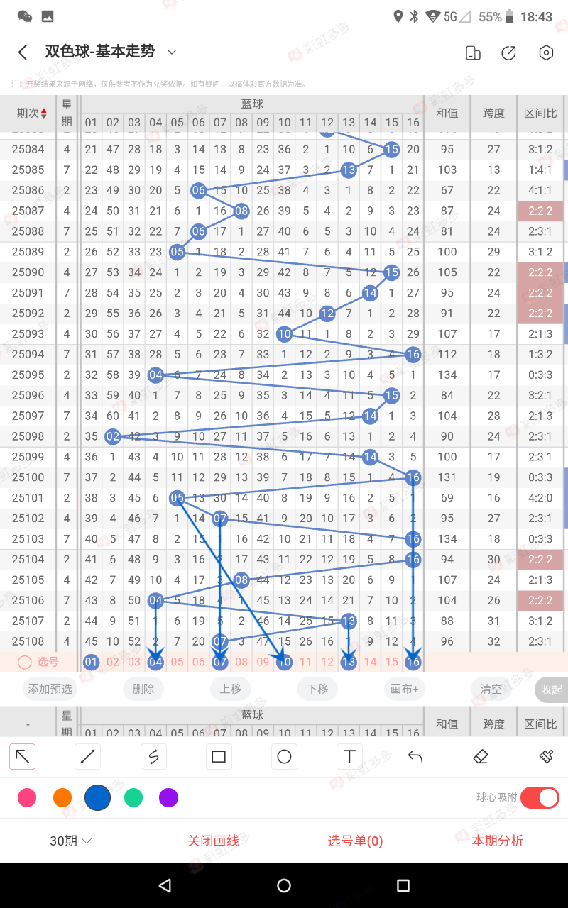再来我们先从近期规律来找到我们本期需要定的蓝球路数,定蓝球路数,我个人介绍二个方法,仅供大家参考