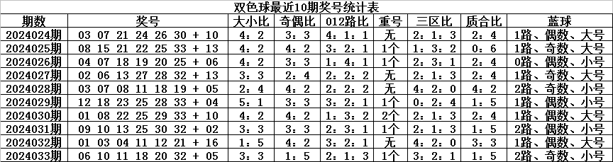 上期蓝球开出2路、奇数、小号:05,近10期蓝球012路比为1:6:3,奇偶比为4:6,大小比为5:5,本期蓝球注意号码03、04、07、08、09。