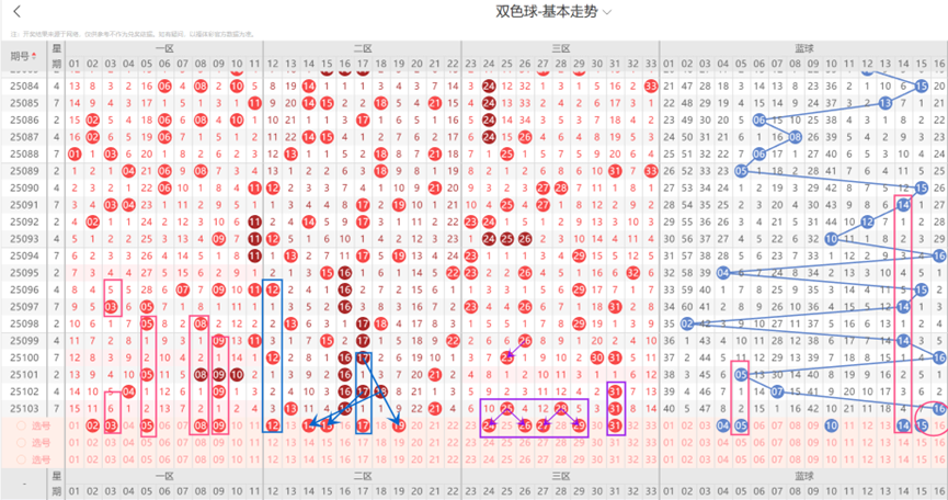龙本龙-双色球-第104期选号分析,区间比看好222和231