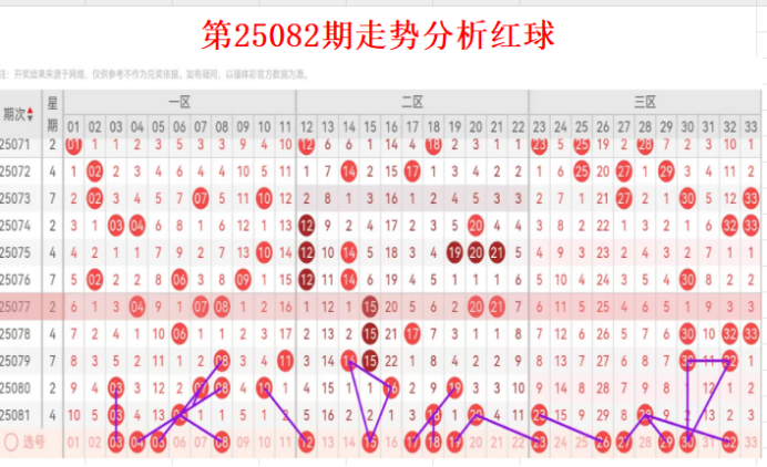 双色球第25082期走势分析,上期大底命中四码,内含红、蓝球大底