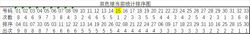 红球15码大底统计顺序:04,01,07,33,05,03,11,32,13,19,20,26,08,22,24