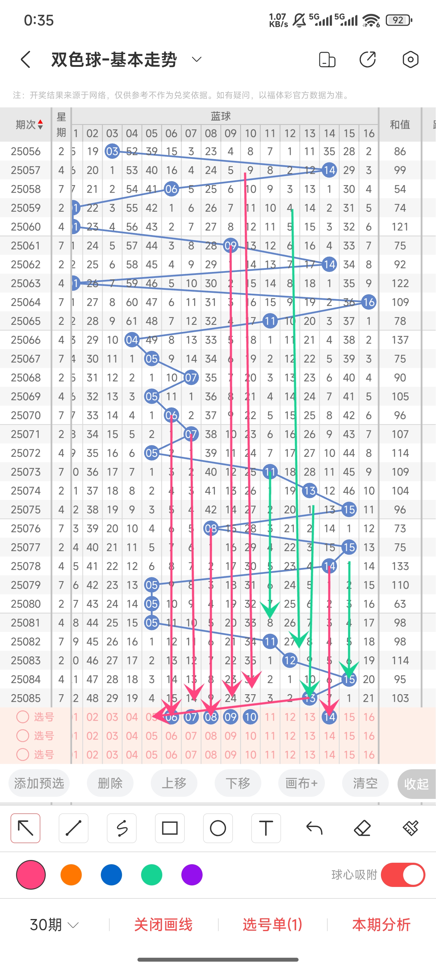 近期回顾:第25084期双色球文章中15+5推荐中命中06,08,10,14,33等5个红球,命中蓝球15。