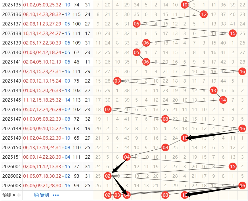 【上期开出蓝色球号码为16】近3期蓝号开出尾数情况统计:第26001期开出尾数5,属于2路尾,2路号码;第26002期开出尾数2,属于2路尾,2路号码;第26003期开出尾数6,属于0路尾,0路号码;
