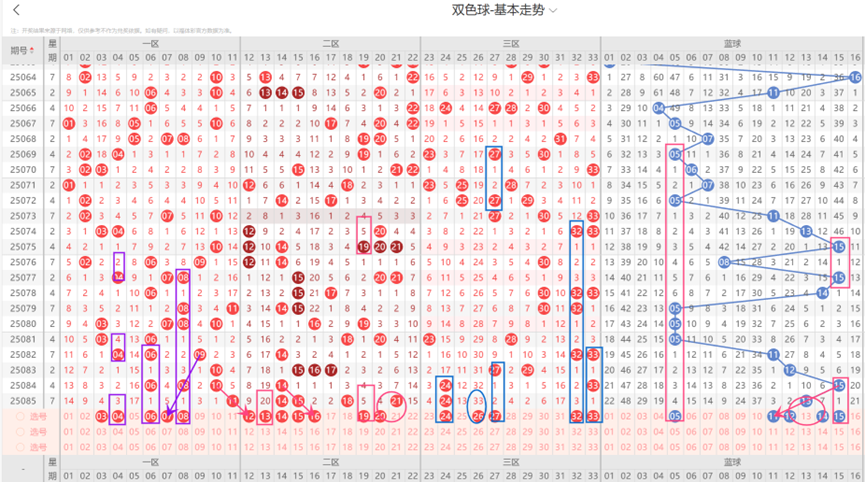 三、福彩双色球第086期选号大底