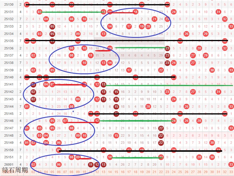 如图所示:体现的是3个局部走势的发展周期,圆圈为密集处的填空,本期定性为新局部走势4期,主力填空第2期,架构填空第1期,定性蛋跨2-12,绿色线14-22,本期绿色线填点位至少3枚。开那6-11压缩,1区补低于2枚号码。
