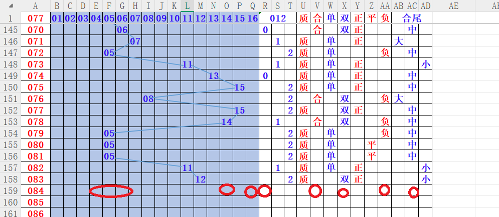 如上图4,012路分析012路,本期重点10路。重点 04 05 06 15 16