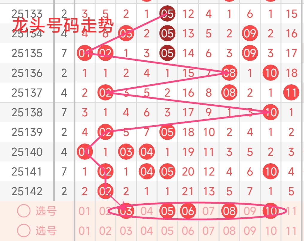 上期龙头号码为02,振幅上升了1点,开出偶数号码。从近期龙头号码走势来看,近期龙头号码波动频繁。上期龙头号码为 02,为偶数号码。从近期龙头号码走势来看,近期龙头号码开出多为小数号码,龙头号码的奇偶走势呈现出一定的交替性,但近期龙头偶数号码开出较多。上期龙头开出02为偶数,结合近期走势,本期龙头号码倾向于在01 - 10区间选择,且偶数开出的可能性较大,预计本期龙头号码可以重点关注01 - 10区间开出。本期还需关注遗漏值较高的号码,本期有望龙头号码热出的区域。综合考虑,本期龙头号码可重点关注03、05、06、08、10。