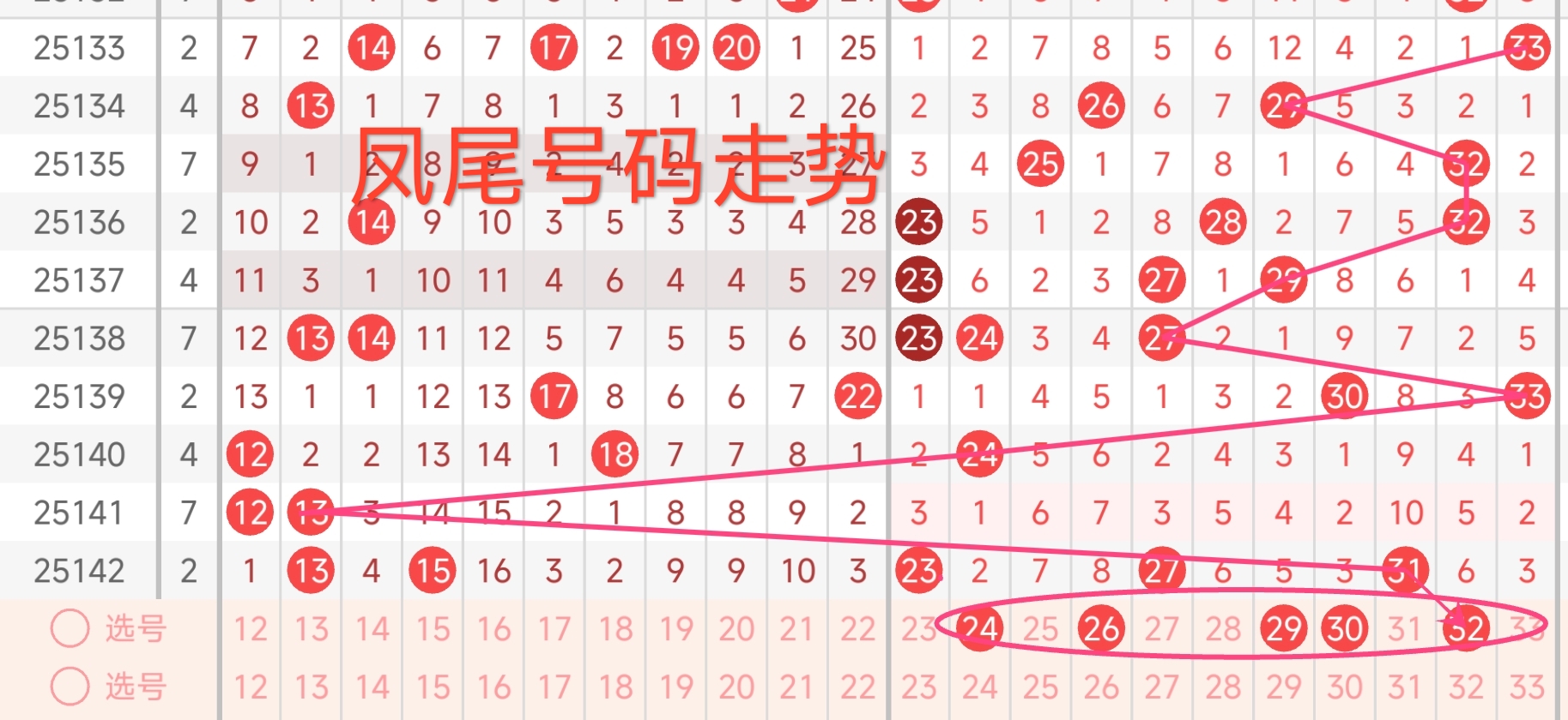 凤尾号码走势分析: