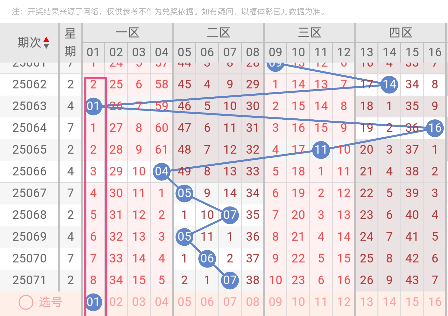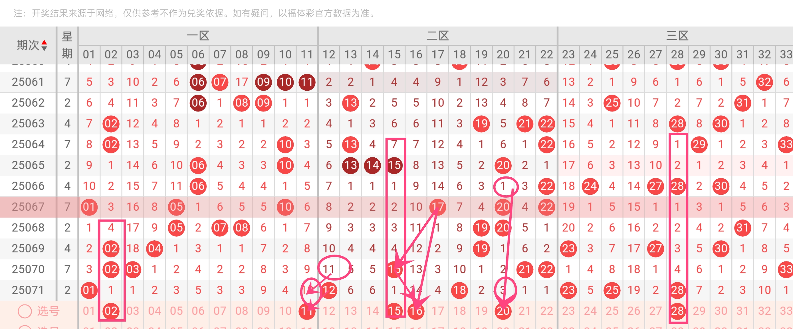 - 连号形态升级:三连号出现率从12%升至25%(如2025061期09-10-11),双连号概率降至45%。推荐1组三连号+1组间隔连号(如05-07-09)。