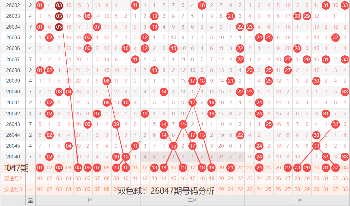 先介绍下上期开奖号码的基本情况,红球奇偶比:3:3,区间比:3:0:3,012路比:3:2:1,通过上期号码简单介绍,分享下26047期号码球个人认为的出号可能,供大家参考!