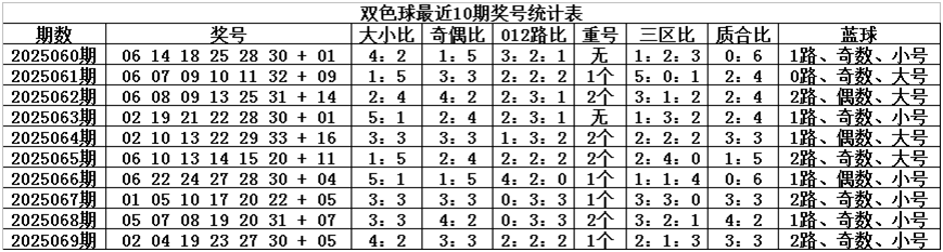 上期奇偶比为3:3,奇偶红球走势相当,近10期奇偶比为26:34,偶数开出比例较高,其中偶数红球热出4期,平衡4期,走冷2期,本期预计奇数逐渐回补,关注奇偶比4:2。