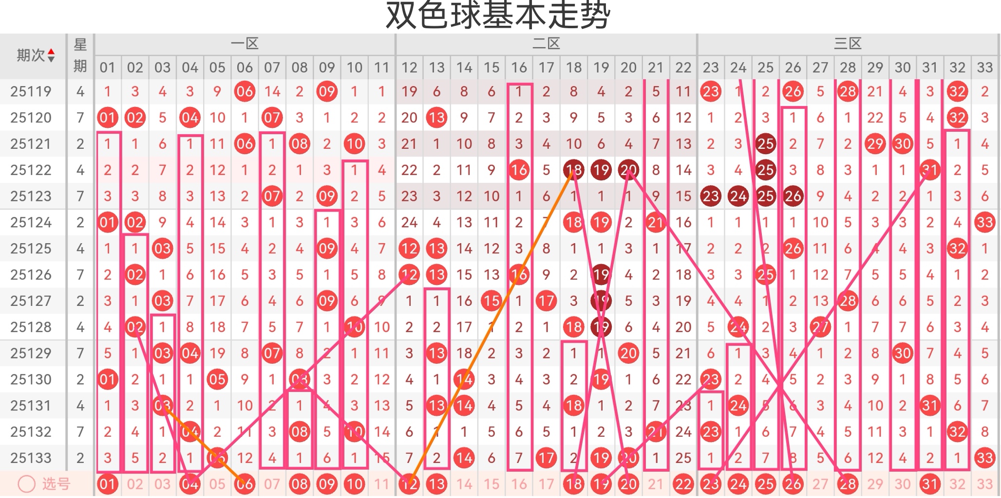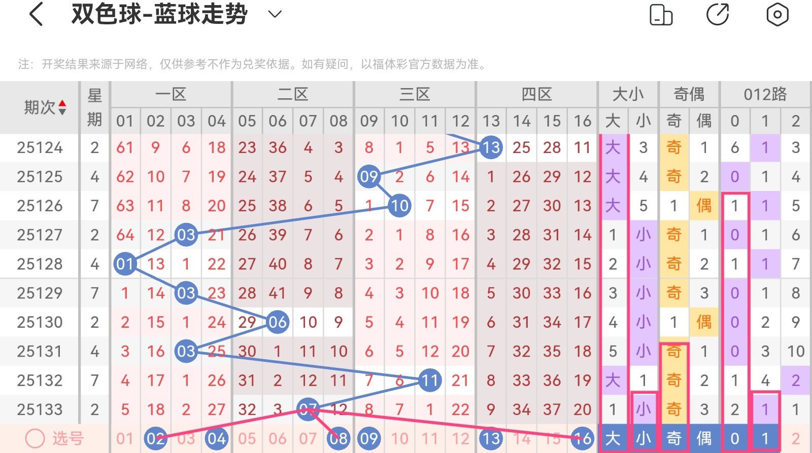 双色球第25134期基本走势分析(上期会员文章龙头凤尾中,三码围蓝对,杀八蓝对)