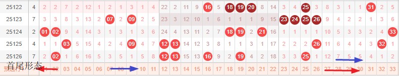 如图所示:首尾制约平衡组范围依次为:推推拉,缩推? 本期形态范围优先选择红色拉伸首尾。由于上期号码已经进入新走势第3期,目前处在新走势第4期,利用常规起号形成左推或者拉伸就是走势正反方向。