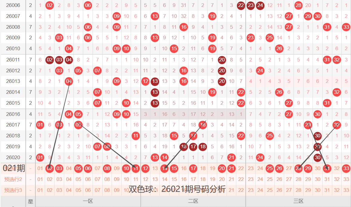 双色球:26021期号码落位分析(开工大吉)