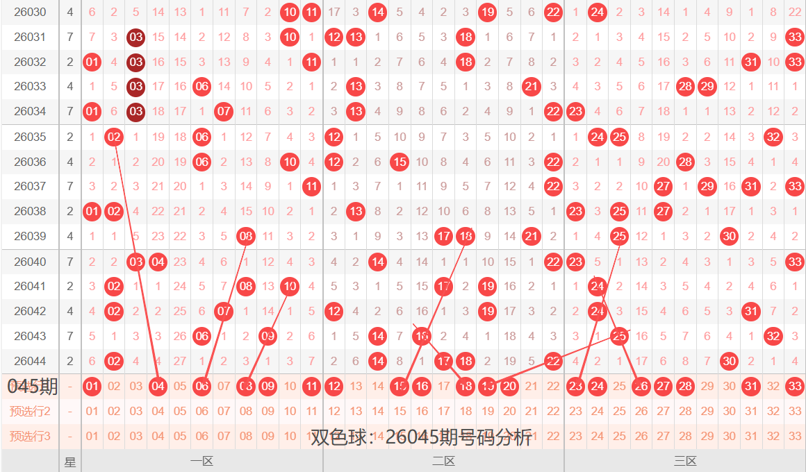 双色球:26045期号码落位分析