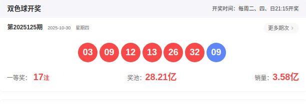 2025125开奖号码: