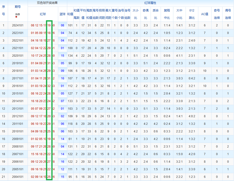 往年同期中选取出现次数靠前的数作为我们的分析对象,其数据有:09 19 28 26 24 18 01等
