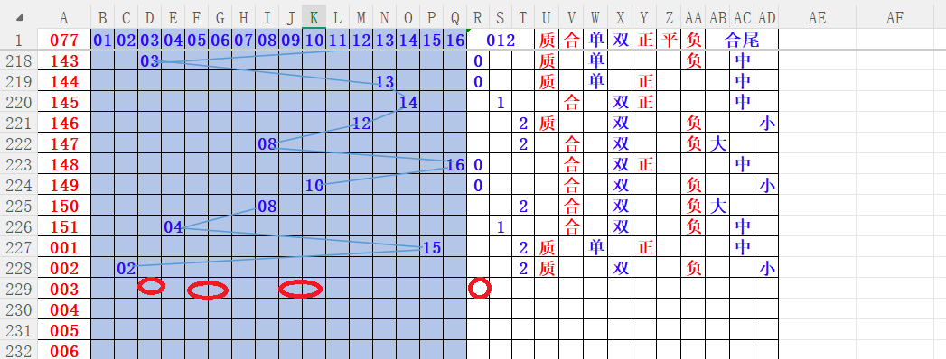 如上图4,质合分析,质数连续两期,本期重点合 03 05 06 09 10关注 。