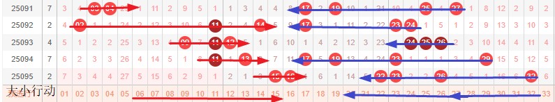 如图所示:体现的是3个局部走势的发展周期,圆圈为密集处的填空,本期定性为新局部走势3期主体填空第1期,修饰真实目的空间期。蛋跨在15-25,真实空间为1-15,本期修饰真实空间要么2枚形成中间压缩,要么靠右出一排号码,体现的是大小均衡或许小号多开。如分割形态继续形成多组间隔1,合并形态则防开出横码。