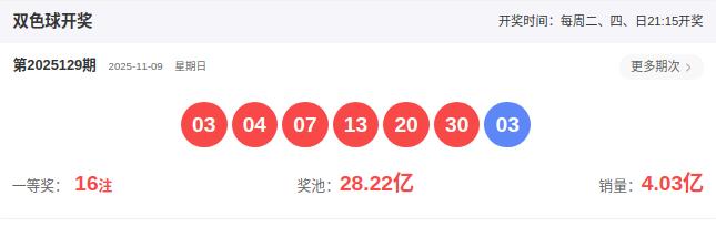 跨度为:27,大小比:2:3,奇偶比:3:3, 质合比:3:3,蓝球开出奇数质数小号码:03。