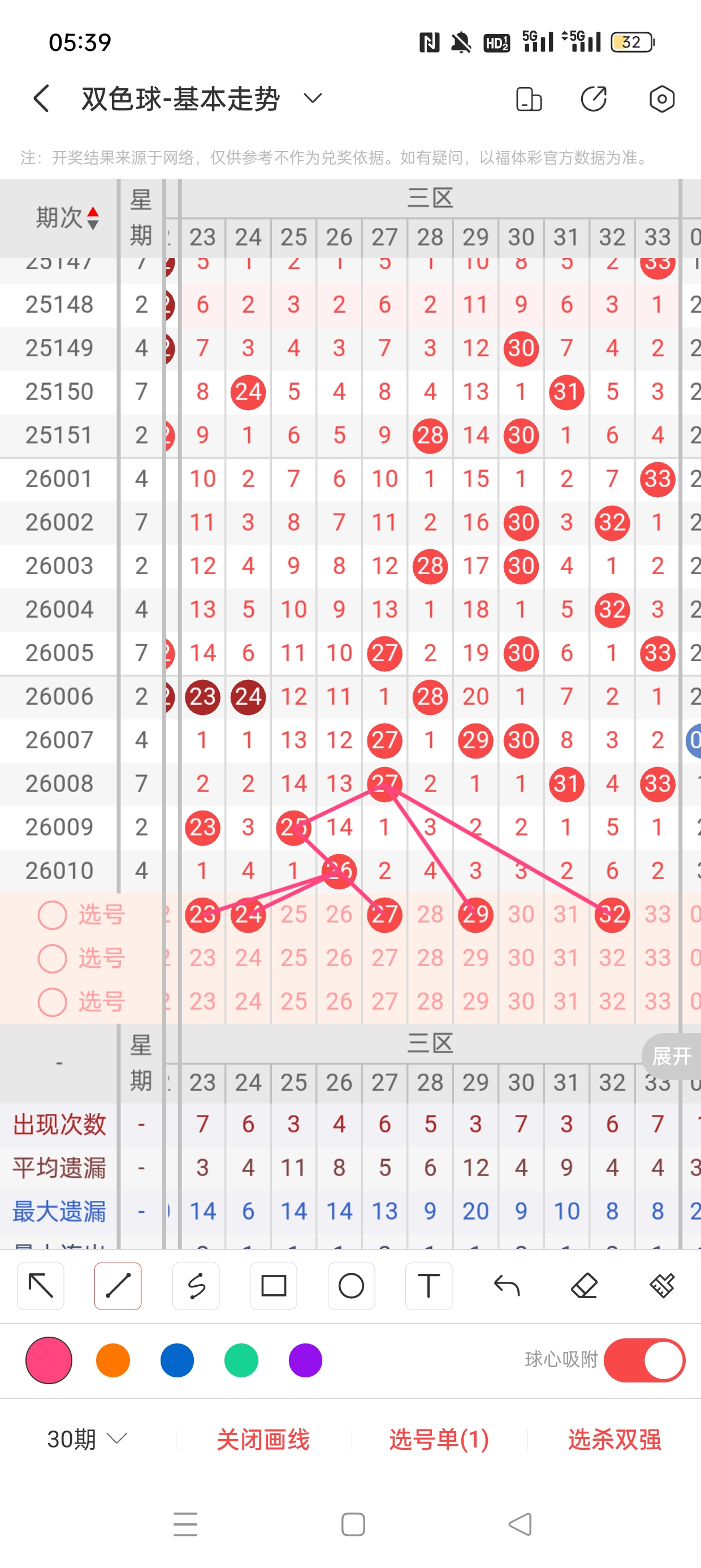 三区(23-33)近15期本区邻孤传6邻9孤0传,孤号热度高,本期着重邻传。近15期本区012路9:1:5,0/2路热度高,本着重1路。23、24分别遗漏1期、4期,两者与26之间呈现向左遗漏递减态势,需防。27已遗漏2期,与26之间呈现向右遗漏递减态势,需防。29、32分别遗漏3期、6期,两者与27之间呈现向右遗漏递减态势,需防。