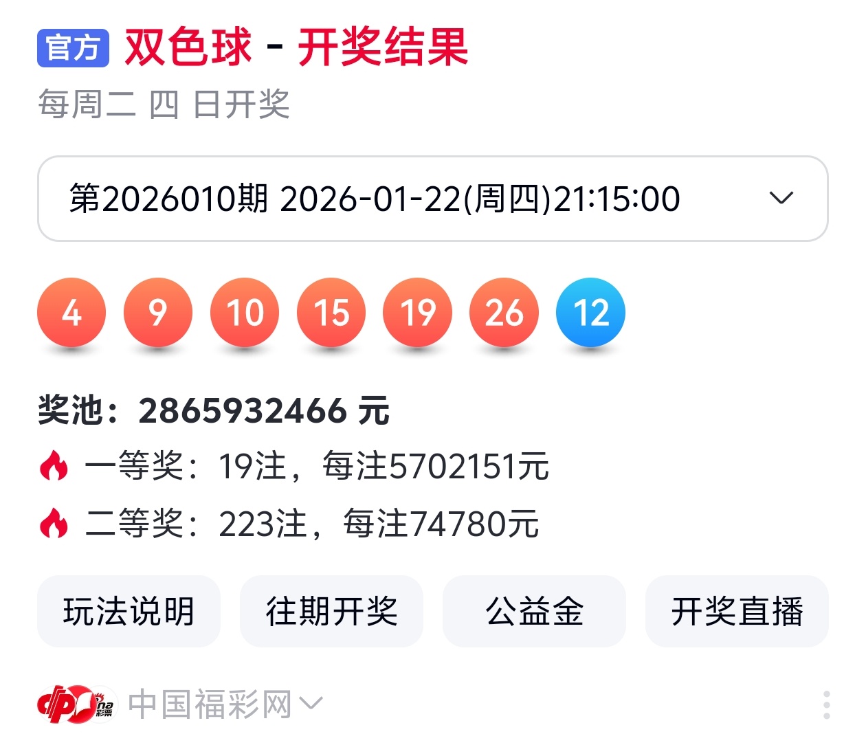 下面是我对2026011期福彩双色球的分析和预判,希望通过我的分析能让大家今晚大红!福彩双色球上期开奖号码如下图: