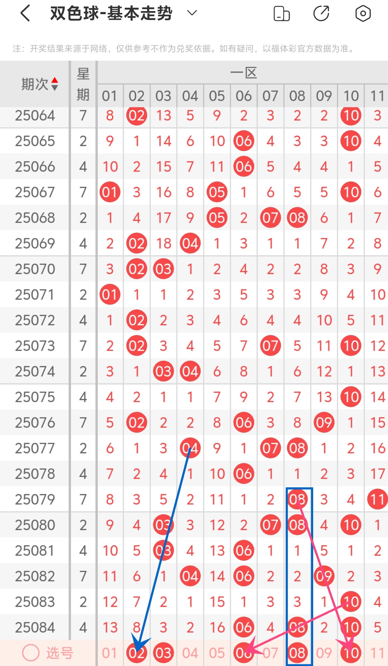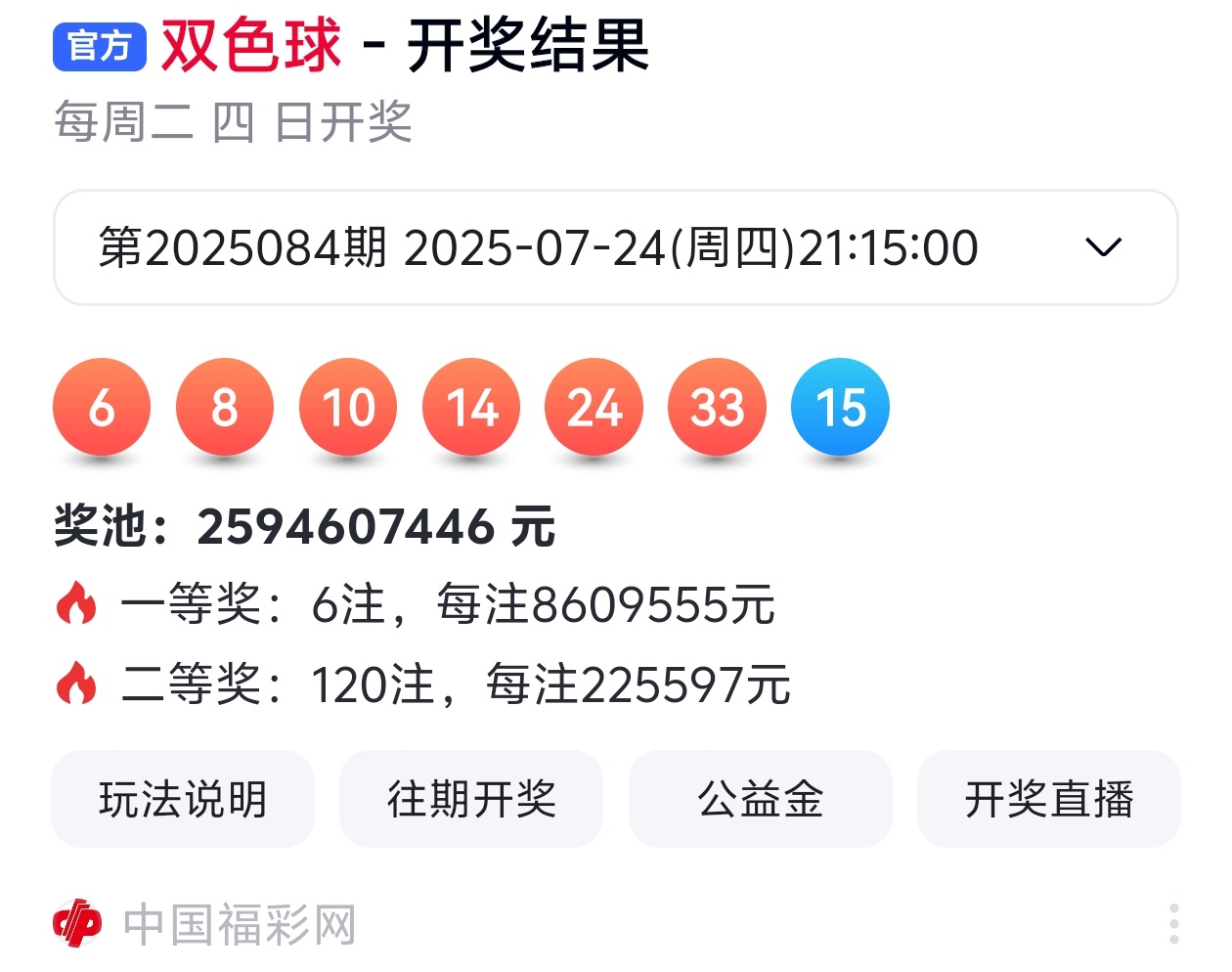 下面是我对2025085期福彩双色球的分析和预判,希望通过我的分析能让大家今晚大红!福彩双色球上期开奖号码如下图: