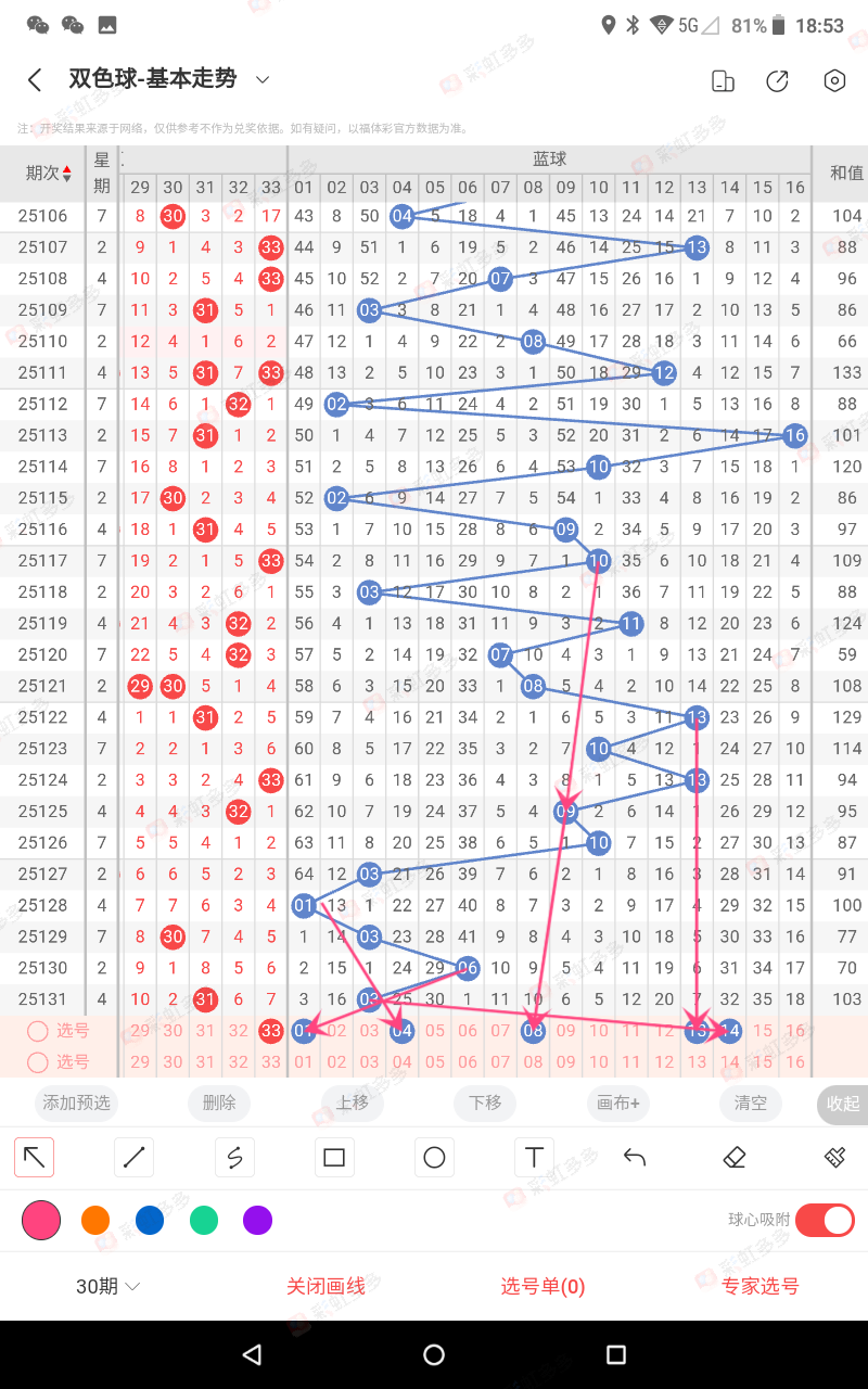 这个说明,二个红1+红2相加得出的和值,可以排除那个路数,也会错,甚至连错,抓有效规律,直到错为止,这期的蓝 1路需考虑,本期防连期错