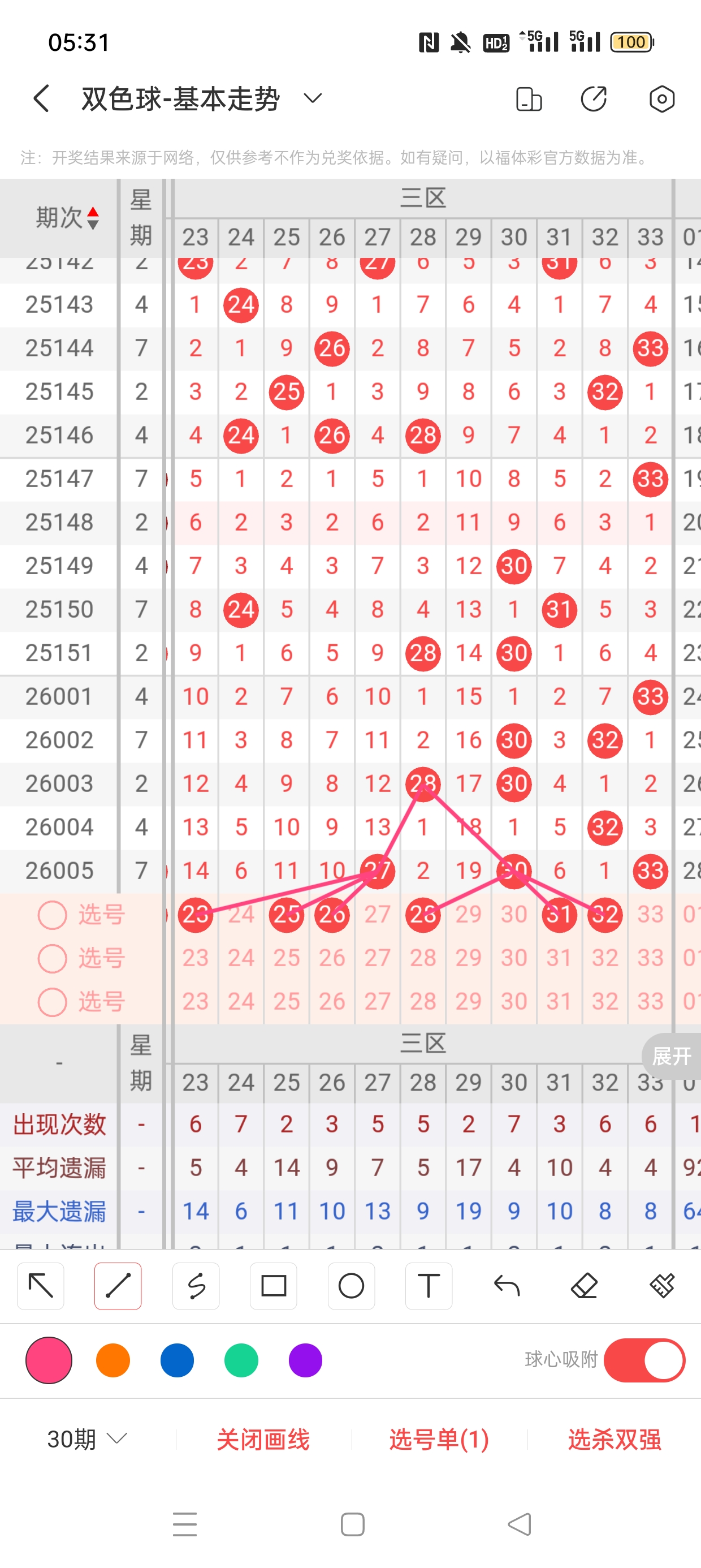 26011期命中5个红球 02,03,04,31,32