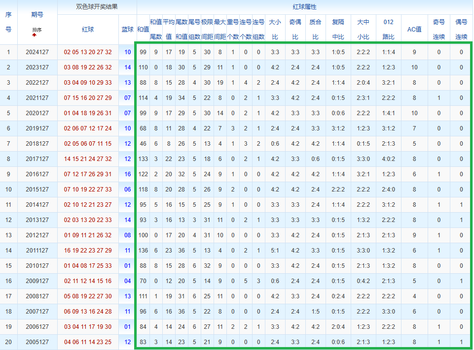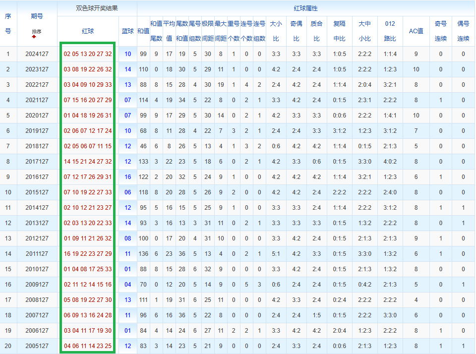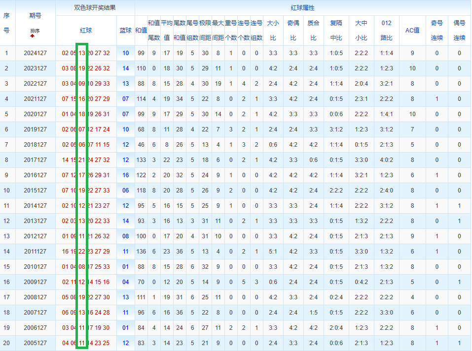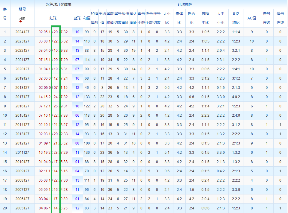 通过观察,我发现双色球往年同期的开奖数据与本期号码之间存在显著关联。具体来说,在红球中,从第一位至第六位,通常会有约4个位置上的数字与往年同期相同位置的号码一致;而蓝球号码中,也有多期开奖结果直接包含了往年同期的数字。因此,我们可以借助往年同期各位置上的号码,作为分析本期开奖情况的重要依据。在此基础上,还可结合往年同期的其他相关条件,进行综合性的号码组合推荐。