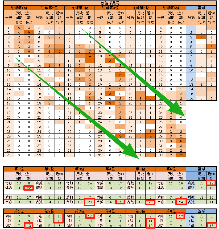 蓝球区,上期看好合数回归,思路正确;既然最近奇数和质数这么热门,本期顺势而为,可以多关注....(留给会员文章吧);