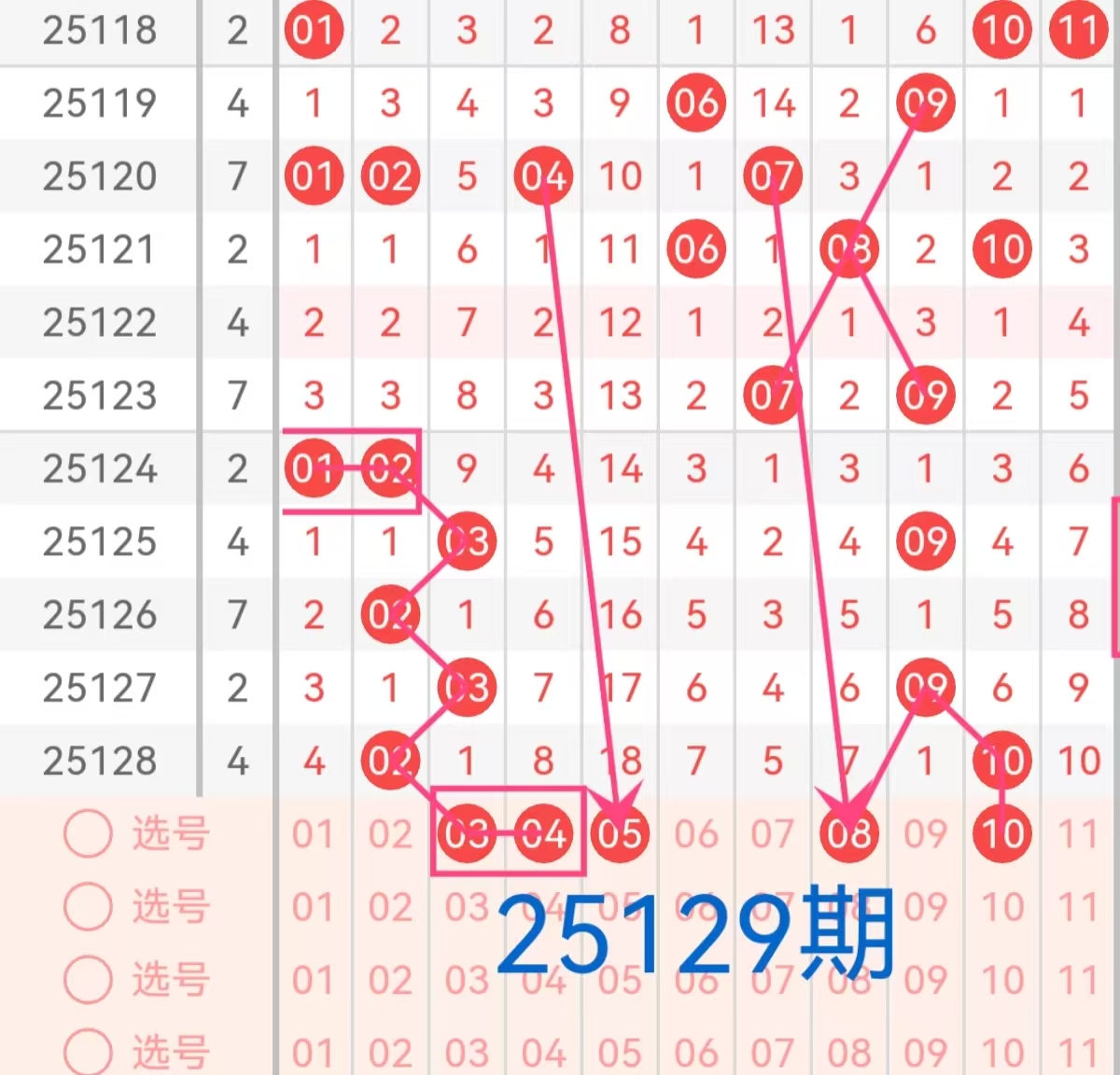 综上所述,本期前区可关注的号码有03 04 05 08 10 13 14 17 18 19 21 25 26 28 29 30