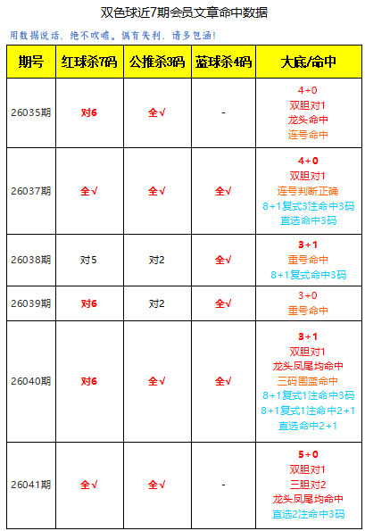 结合以上分析,茯苓子对第26042期双色球号码推荐如下: