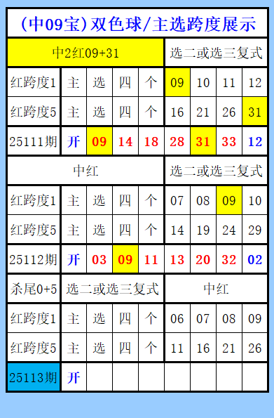 双色球第(中09宝)主选跨度展示
