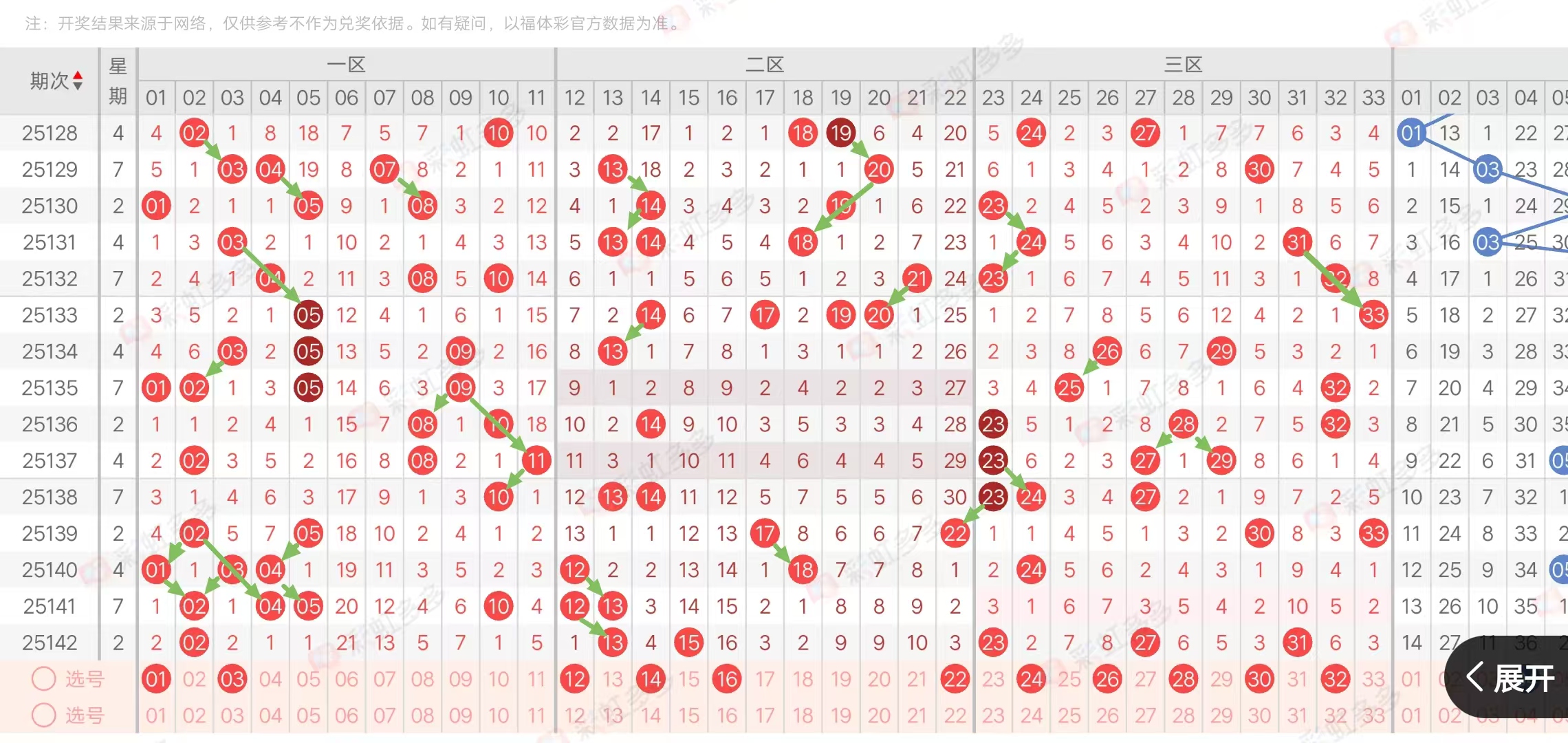 (三区:一区1-11,二区12-22,三区23-33)上期三区比1:2:3