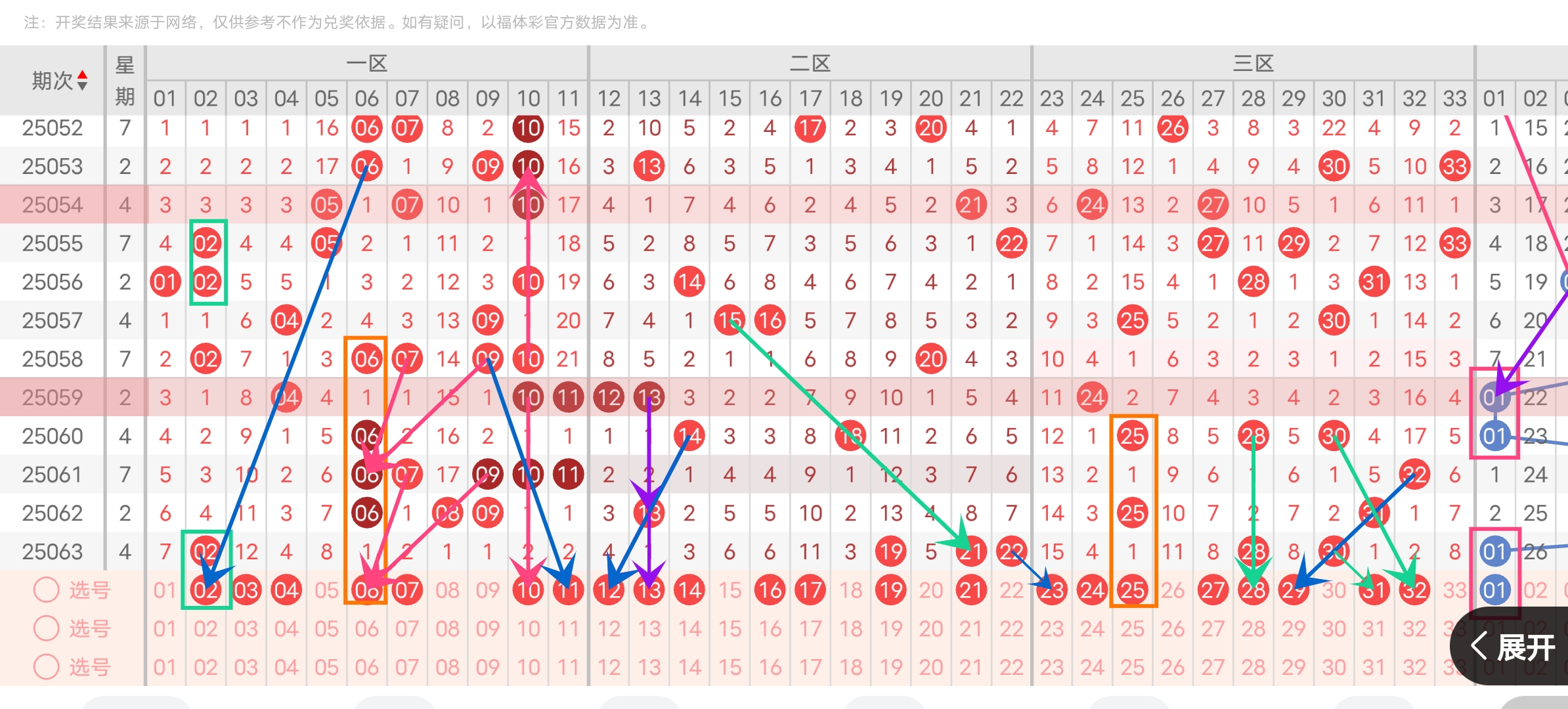关键特征:和值122(远超近10期均值93.5),连号1组(21-22),重号0个,二区过热需降温,一区需看回补。