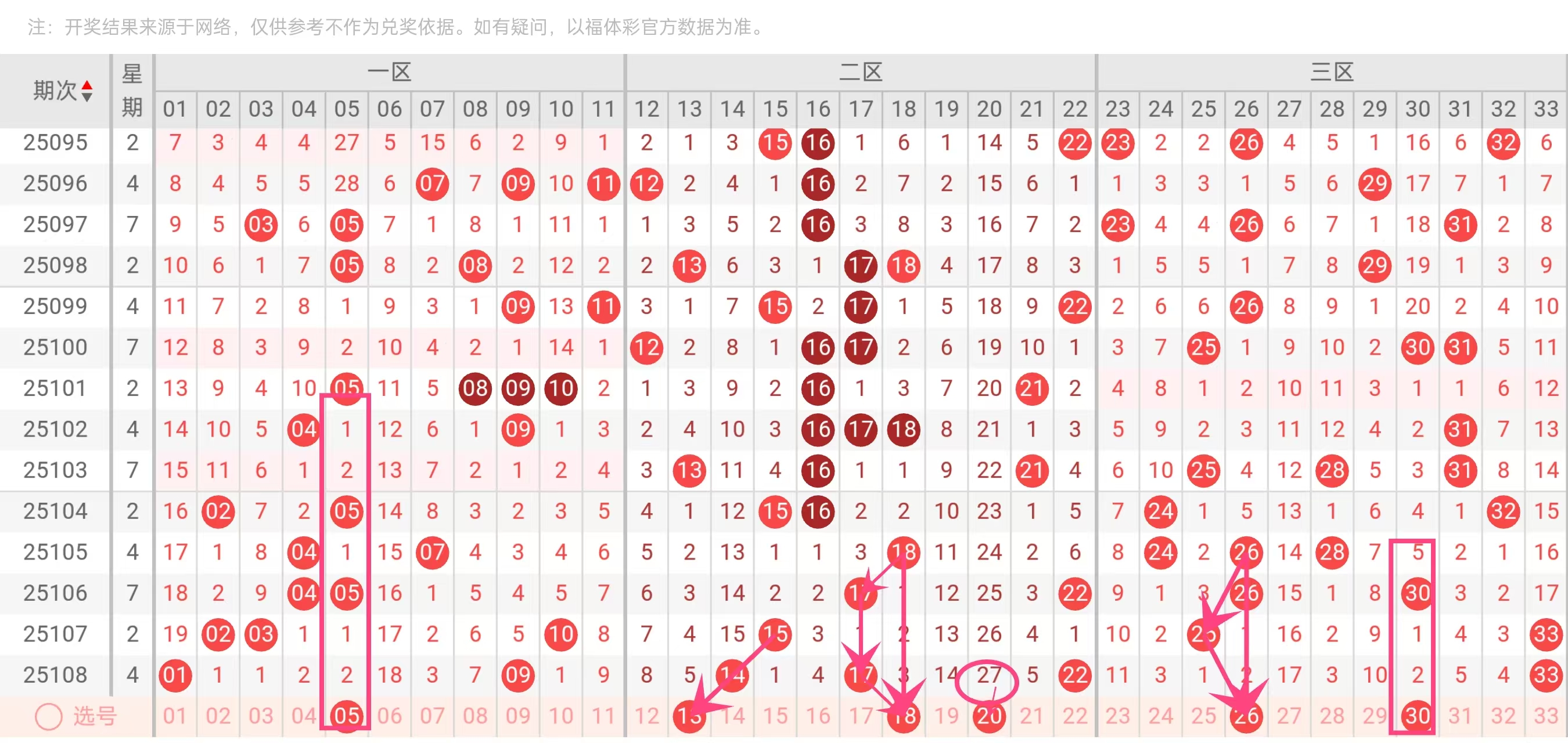 30号:后段号码中回补潜力较大的选择。历史数据表明,30号与26、29等号码搭配出现的概率较高。从近期走势来看,30号已经度过冷态周期,开始显示出回补迹象,是后段号码中值得关注的选择。