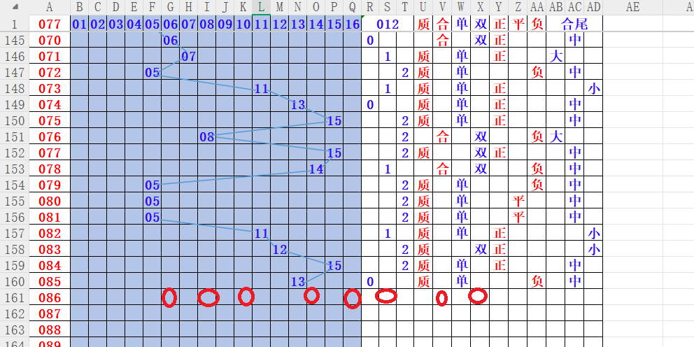 如上图4,012路分析012路,本期重点10路。重点 06 08 10 14 16