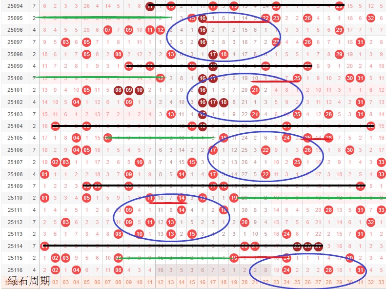如图所示:体现的是3个局部走势的发展周期,圆圈为密集处的填空,本期定性为新局部走势4期,架构填空第1期和主力填空第2期,其中15-24上期放大的往2区压缩,代表17点位有号,其中绿色空间发展为左推平行,代表4-8有号,蛋跨预估3枚,带重1枚,即本期号码主力在1区或者3区。