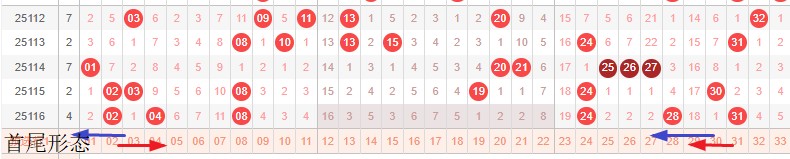 如图所示:首尾制约平衡组范围依次为:推缩推,推拉? 本期形态范围优先选择红色压缩首尾。由于上期号码已经进入新走势第3期,目前处在新走势第4期,利用交换首尾形成1区3枚还是3区3枚,体现形态不一样,即为走势正反方向。
