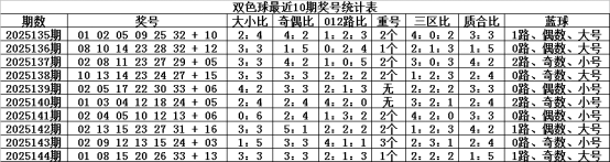 上期奇偶比为3:3,奇偶红球走势相当,近10期奇偶比为30:30,奇偶红球持平,其中奇