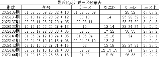 关键词六:红球三区分布: