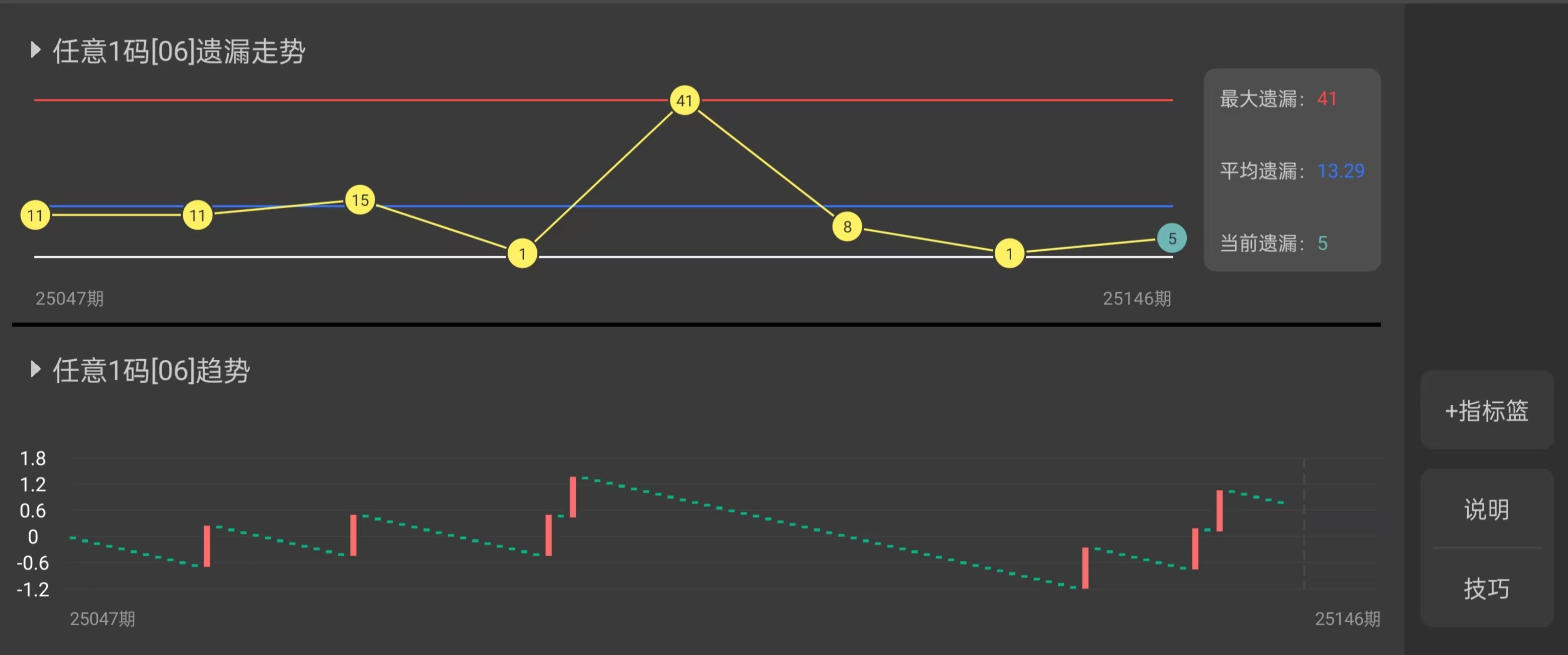 由于蓝球每期仅一个号码,其每期的“中位数”和“平均数”即为该号码本身。因此,分析重点转向这11个蓝球号码的集合。计算得出,这11期蓝球的总体平均数约为8.8,而总体中位数为6。平均数是所有值的算术平均,受极值影响较大;中位数则将数据一分为二,更能反映典型位置。