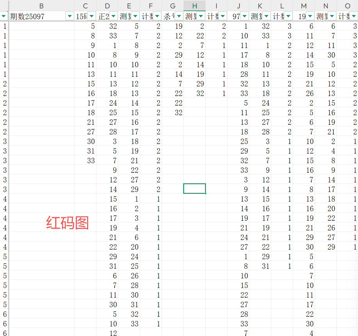 得出一组红码数据就是:5 8 9 10 11 13 15 16 17 18 21 27 30 31 33