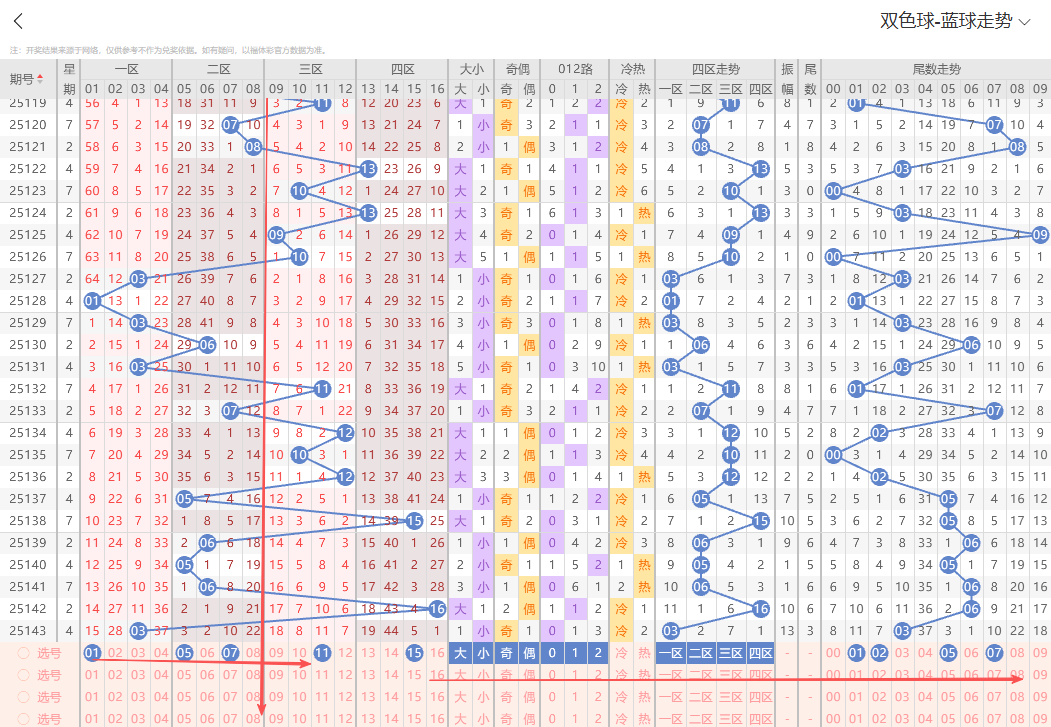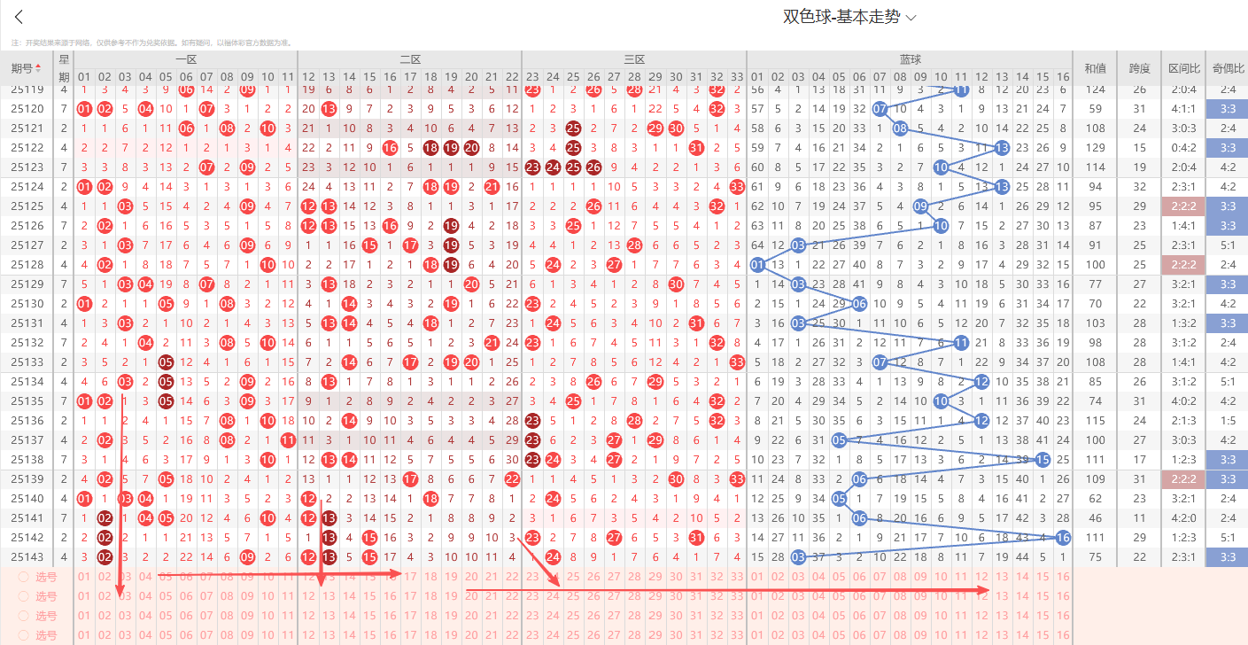 一、红球特征分析:(通过整体走势不难看出每期开奖号都具备以下明显的特征点)