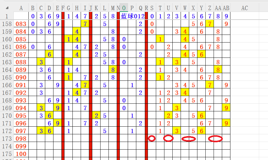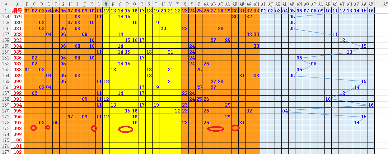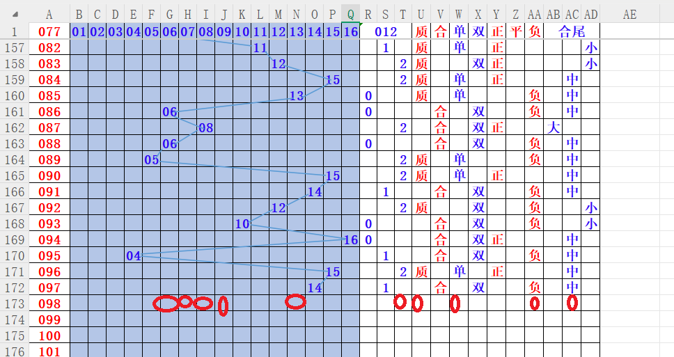 如上图4,012路分析012路,本期重点10路。重点    07 08 09 13 16