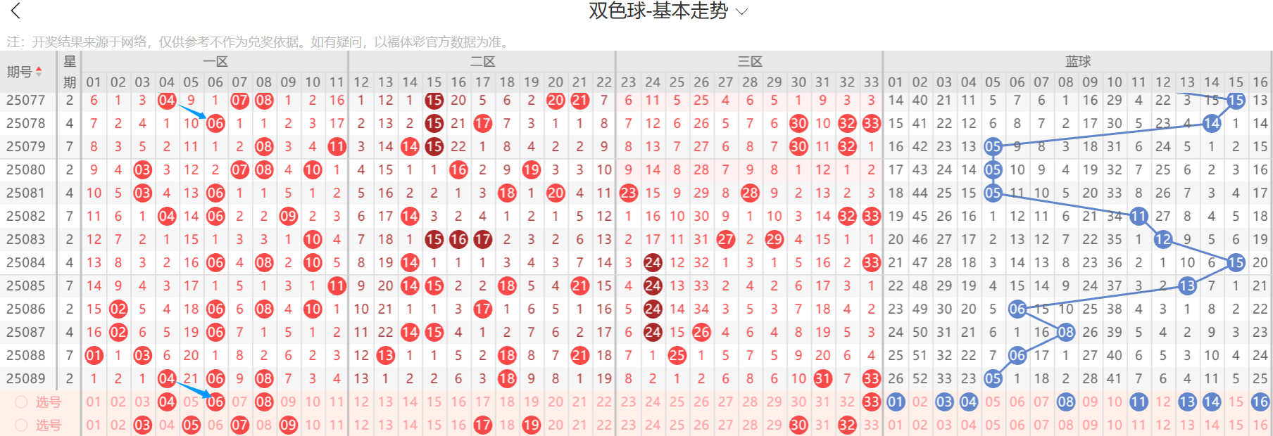 上期的重号一码按死18,相当稳健,本期的重号看4.6.8.33之中开出,上期边号一个,本期继续看一个或两个,小心极端多开,有同尾号,上期的冷号一码按死31,本期的冷号仍然要考虑一个,目前冷号仅剩5.12.22.30这四个了,建议至少带一个更稳妥,本期的蓝球大底1.3.4.8.11.13.14.16,以上就是初看,假如有冲突,则以小车其次直播间为主。