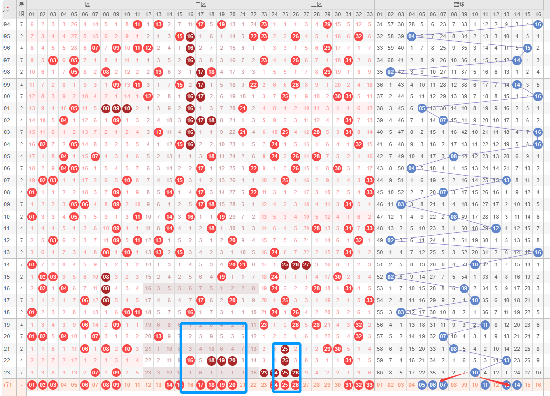 蓝球区,上期蓝球开到三区号码,总体上看,本期比较看好....(留给会员文章吧);